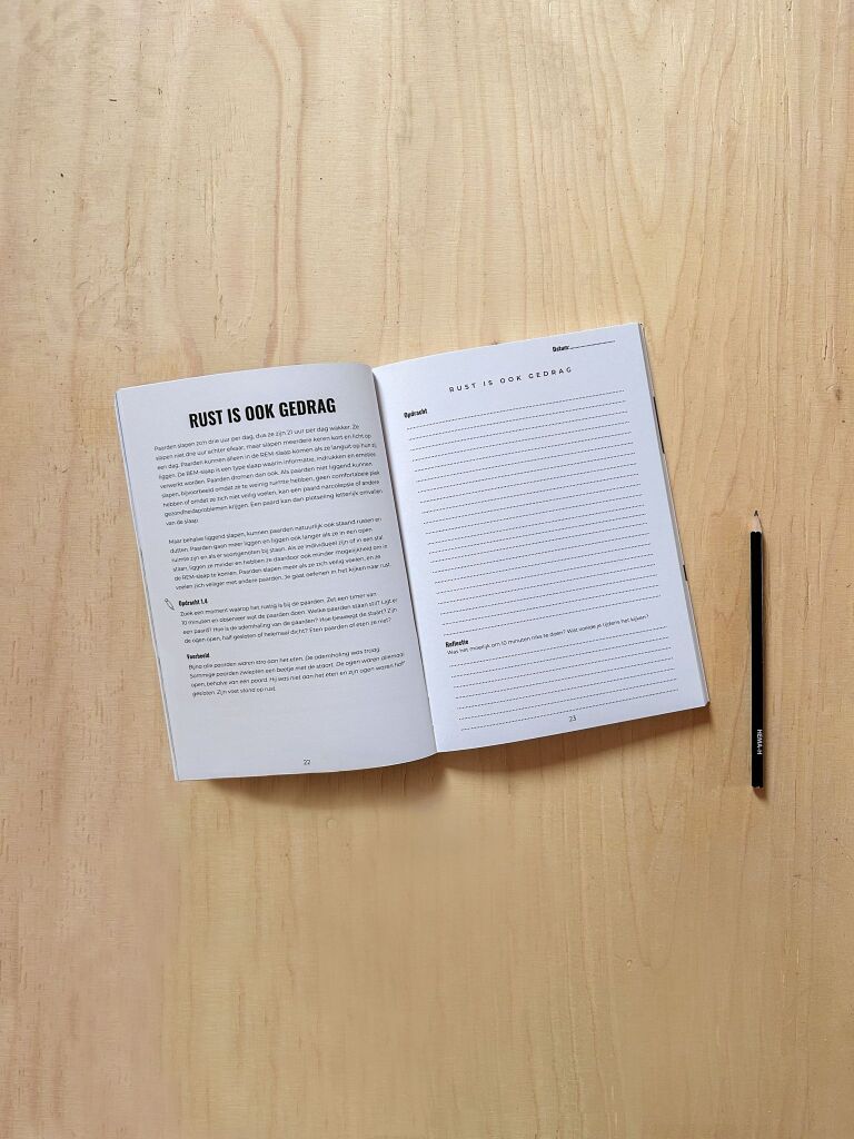 Neem het boek gerust mee naar stal om samen met de paarden oefeningen te doen. Schrijf, kleur en wees even gewoon bij het paard. Geen vaste methode en geen oordeel, maar nieuwsgierigheid, kennis en actie. Voor iedereen die wil leren, reflecteren en doen. Voor paarden die mogen zijn wie ze zijn. En voor mensen die nieuwsgierig zijn naar wat er nog kan ontstaan.